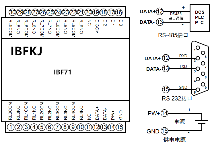 三路DI和十路DO繼電器輸出,RS-485/232遠程I/O模塊 IBF71